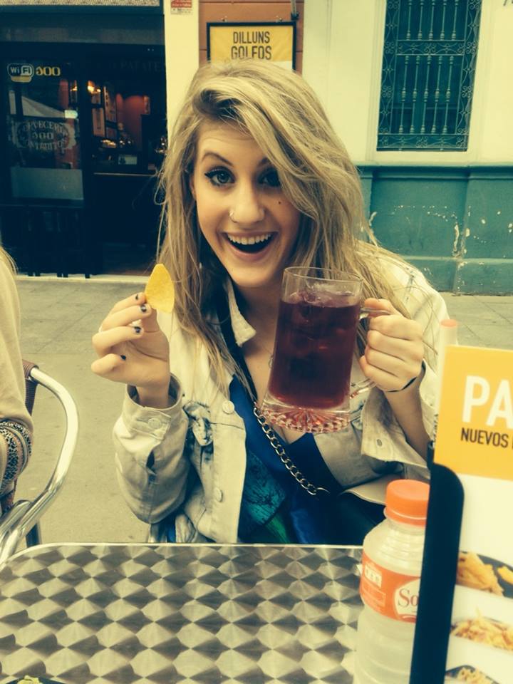 visited Spain. Our hostel was very nice, it has a decent bathroom for a hostel, was fairly quiet, included breakfast and even has a lounge area! PLUS it was within walking distance of the beach.We walked down to the beach where we found a very nice little restaurant, MAN GO restaurante. We enjoyed some delicious sangria and tapas. The prices were reasonable, especially for being right on the beach. After lunch we laid around in the sand, we were fully clothed however because although it was sunny it is not warm enough in April to go in the ocean.