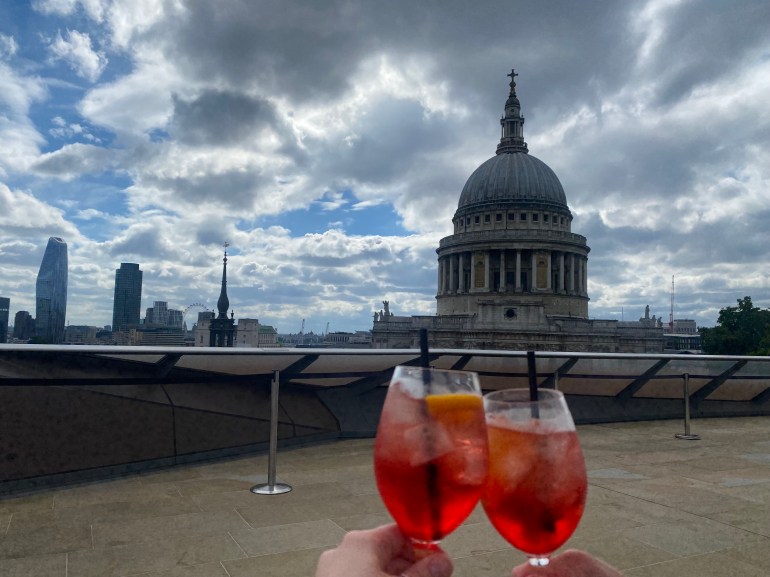 Have a glass of champagne with a view of the Tower of London, I believe it’s called HMS Belfast, it’s connected to the ship in the middle of the Thames.