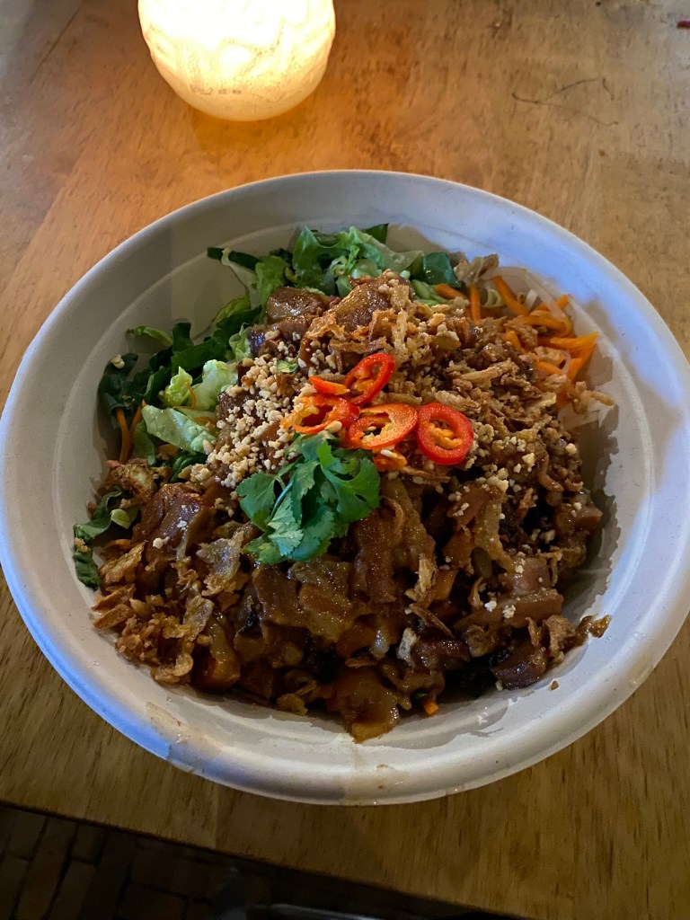 Foodhallen: This is a massive food hall that was a short walk from our hotel, it offered a huge variety of different types of food ranging from vietnamese to pasta, meatballs, indian, mediterranean, burgers, pizza, ramen, traditional amsterdam treats, Portuguese sandwiches, this isn’t even the half of eat. We ended up eating here twice during our visit. The first night I wanted a Banh mi sandwich but they had ran out of bread so instead I ordered a Banh Mi bowl and oh my god. I can still taste it when I think about it. So delicious. Dustin had a prosciutto sandwich from one of the first food stands when you walk in on the right and it was delicious too. The next time we came back we enjoyed the Dutch meatballs, a wrap from the Indian food stand, and some gyoza.