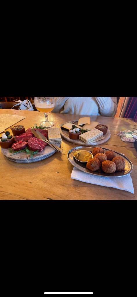Gent aan de Schinkel: This is a super chill and awesome pub where we decided to grab some snacks and beers after exploring all day. We ordered some traditional dutch snacks ( the croquettes, some cheeses and raw sausage) and enjoyed the atmosphere. I really loved this place.